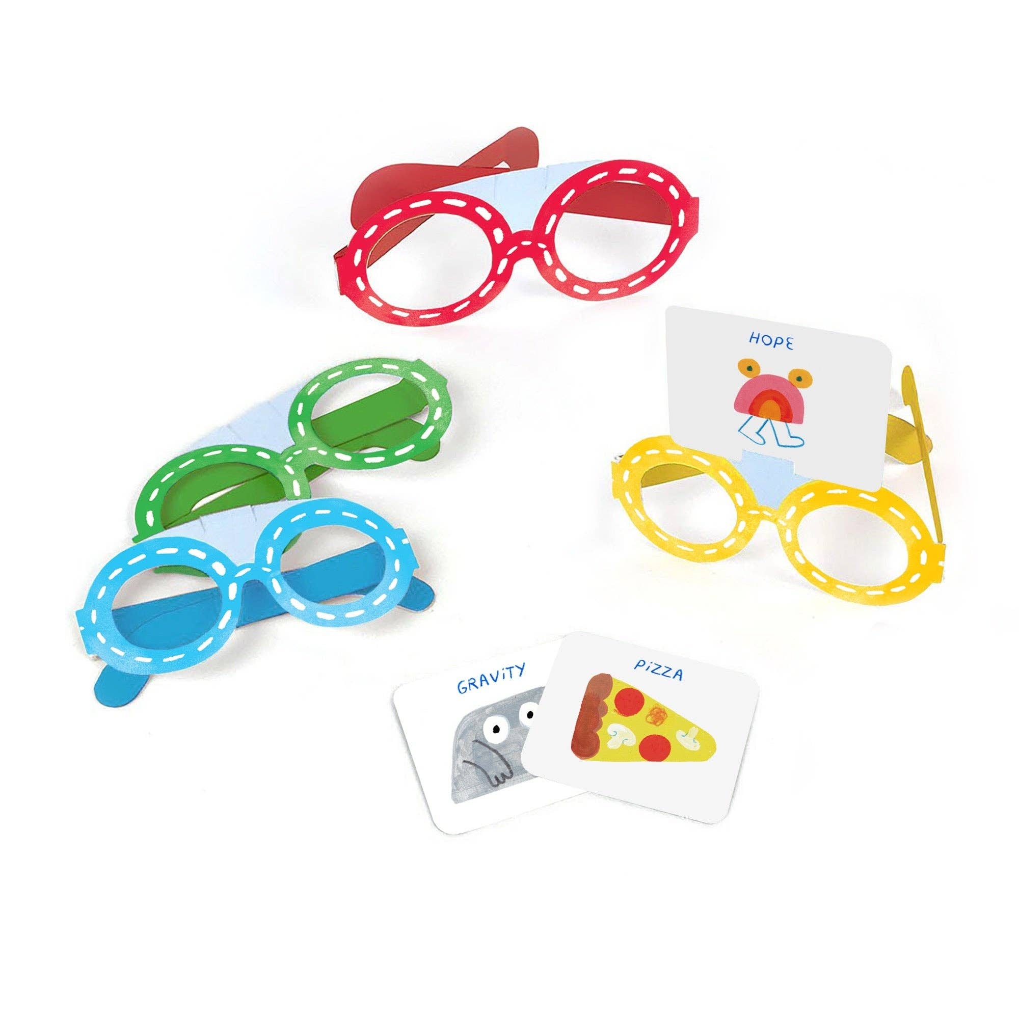 Simply pop a card into another player's glasses and get to guessing! Half the deck will help children understand and talk about Invisible Things like emotions, sounds, and dreams as they ask thoughtful questions: "Am I a feeling?" "Do I feel this a lot?" "Does this make me happy?" "Am I love?" "YES!" The other half of the deck encourages awareness of what's in the world around them as they ask silly questions: "Am I food?" "Am I cheesy?" "Do I like pineapple on this?" "Am I pizza?" "YES!"