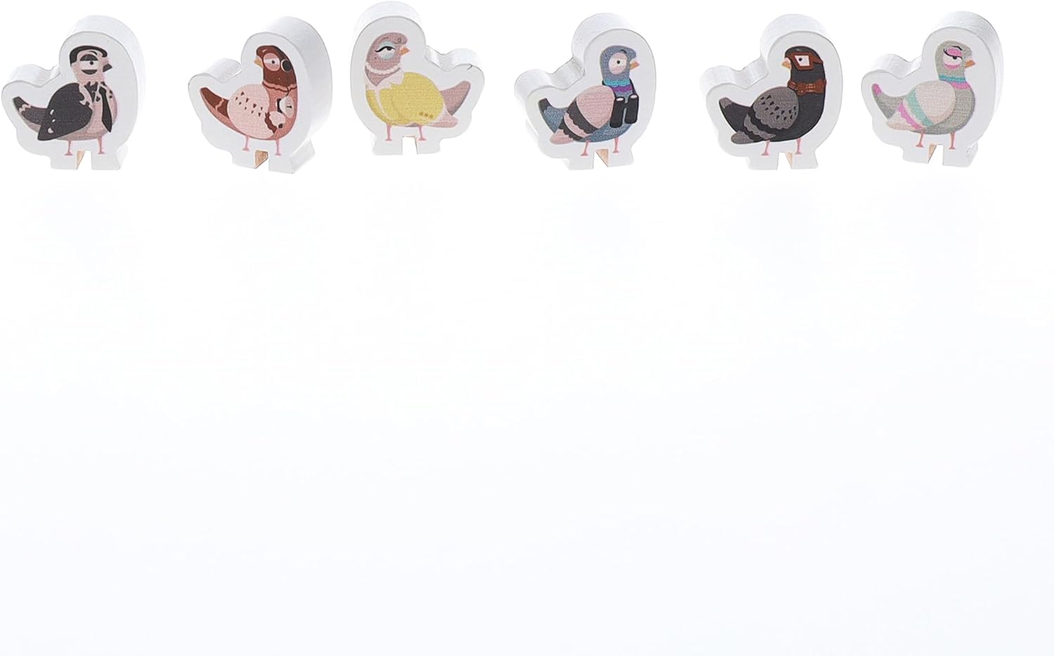 Made using 65% recycled materials, FSC paper, and soy inks. Pigeon meeples made from FSC wood.