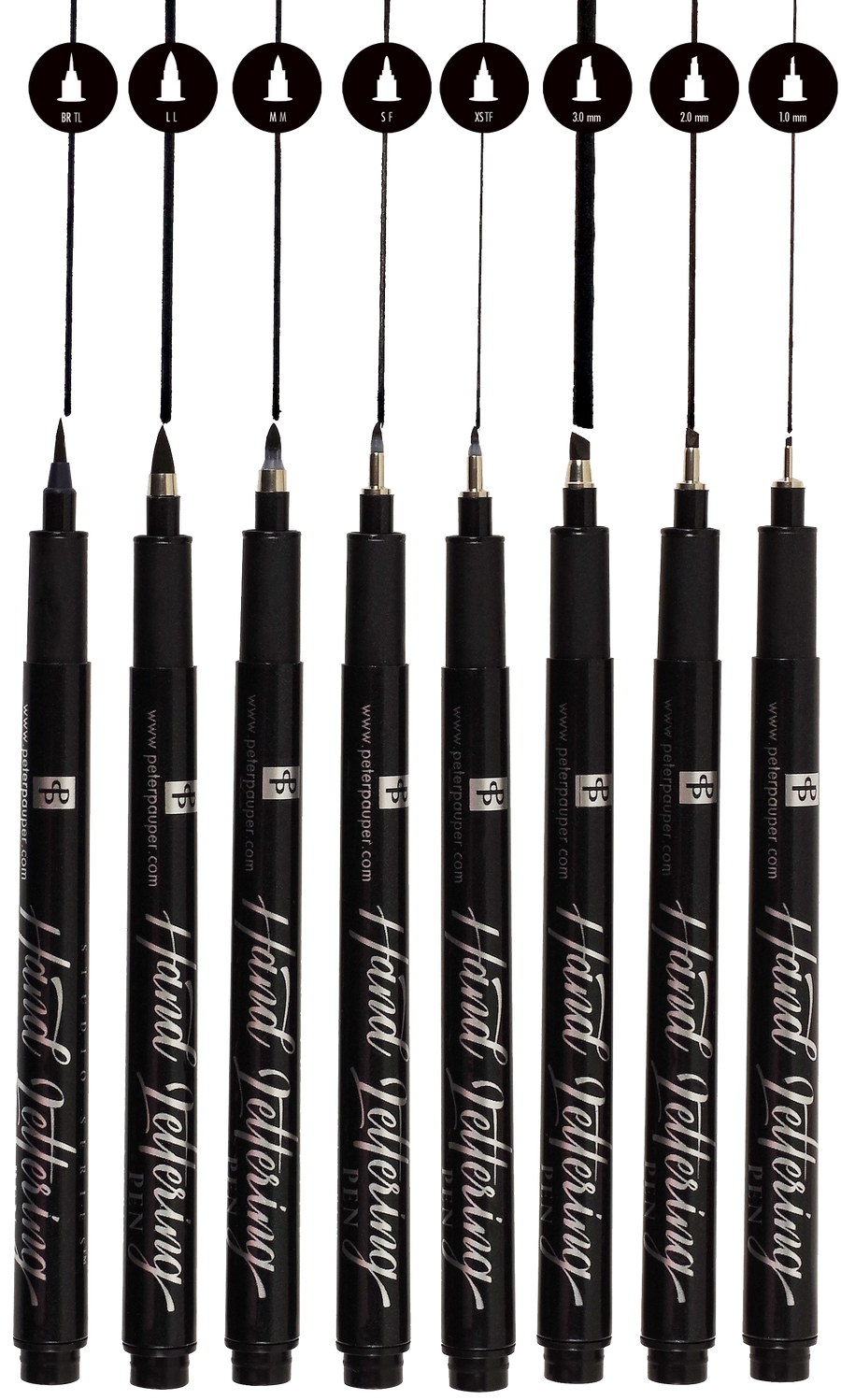 Brush tips come in sizes from extra-fine to broad: XS, S, M, L, BR.
