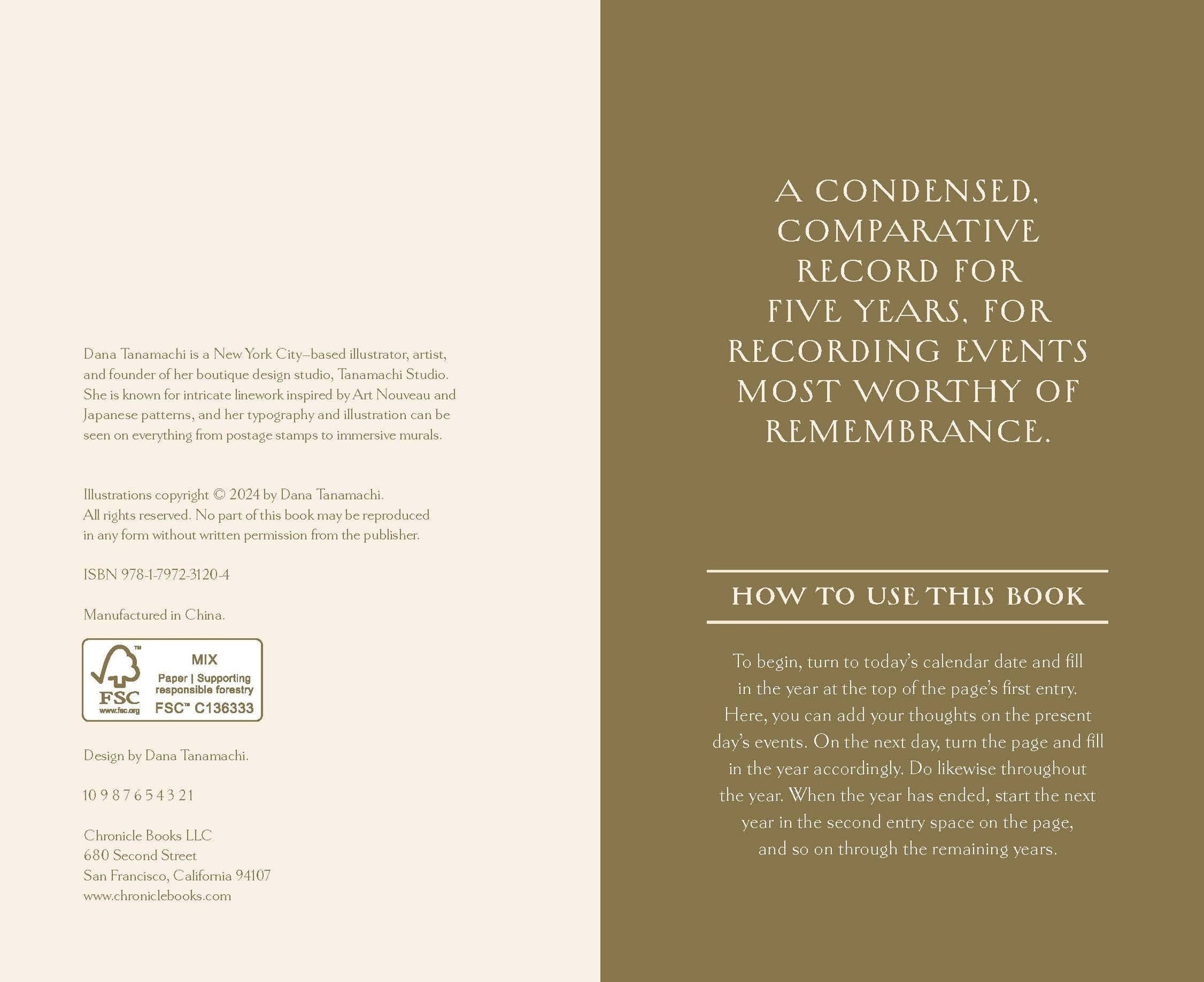 REMEMBER AS YOU RECORD: As you write each day, this journal allows you to compare today's notes with those from previous years on the same date. Rediscover the events of birthdays, anniversaries, holidays, or any special date going back five years!
