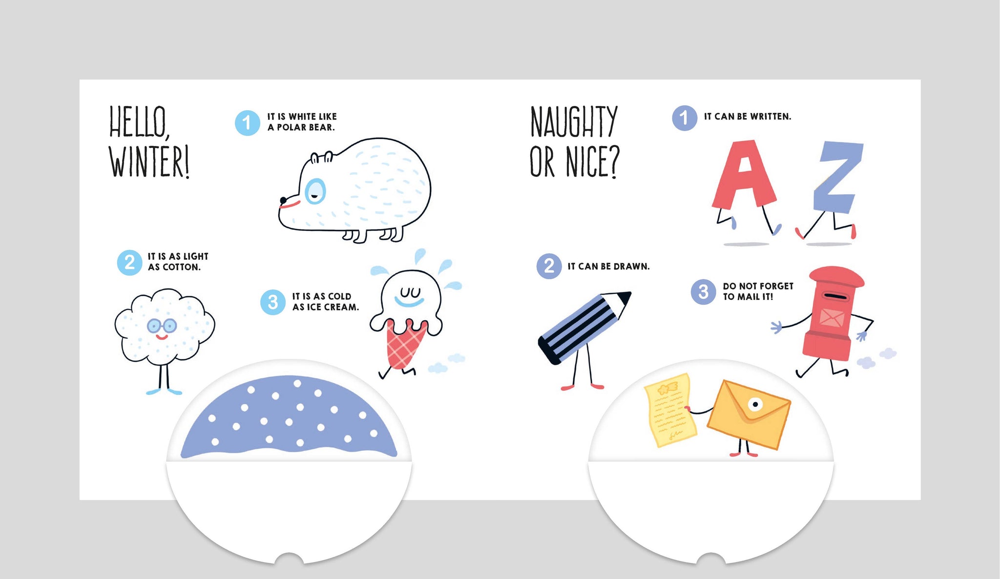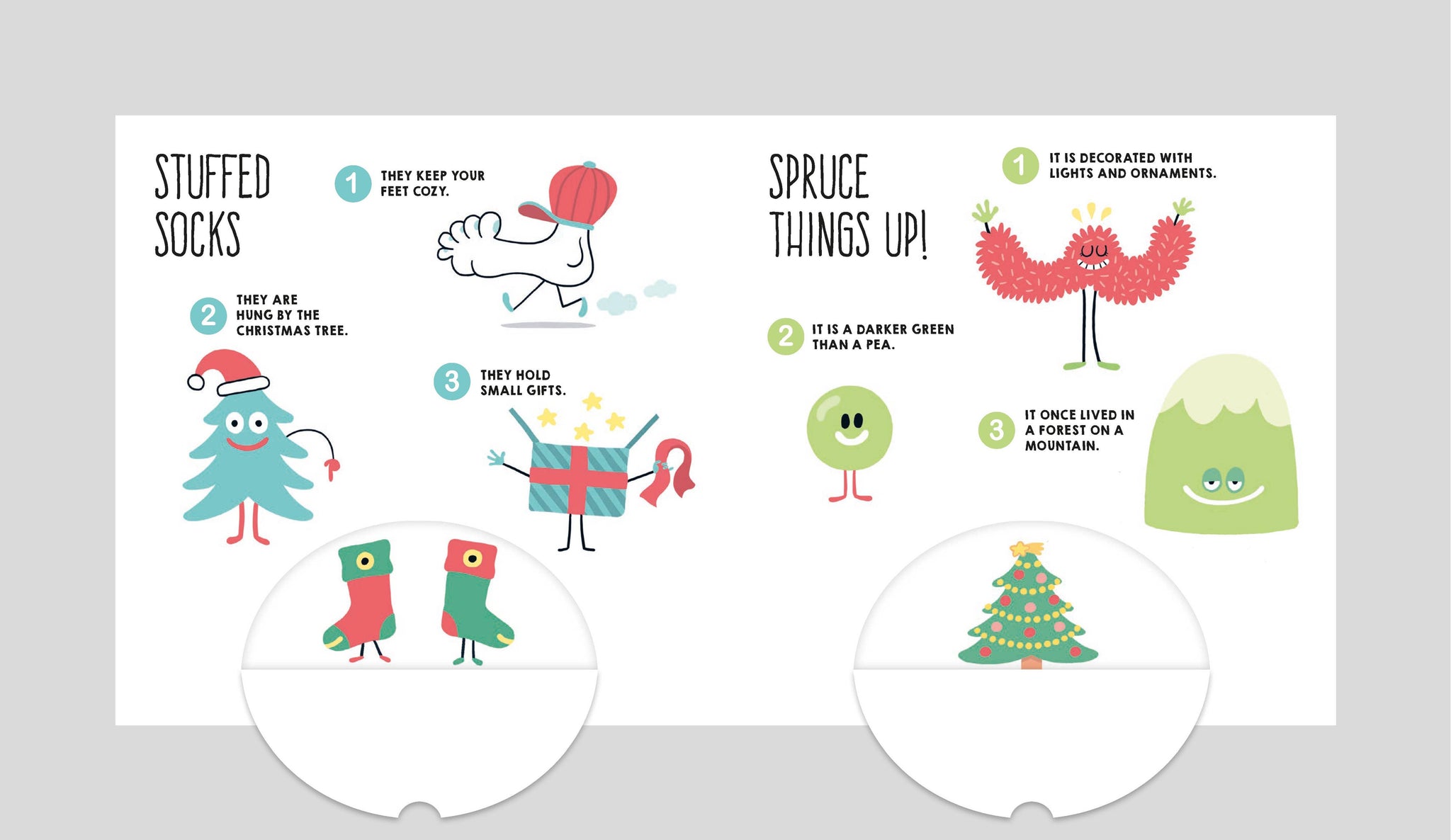 A PLAYFUL GAME IN A BOOK: This interactive novelty book will have the youngest readers guessing and practicing identification skills as they learn all about Christmas.